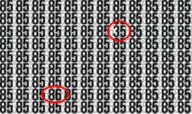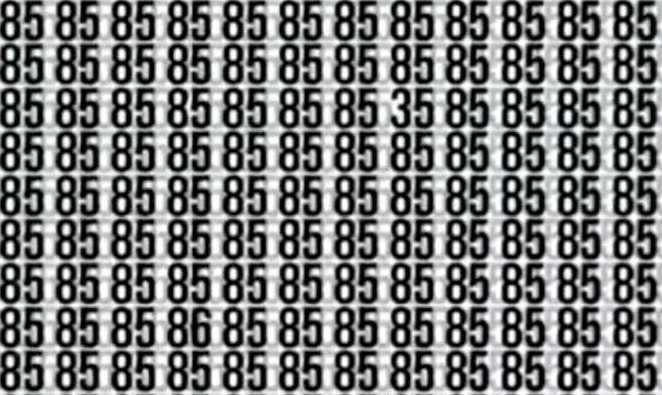 Στον επόμενο γρίφο πρέπει να βρείτε δύο κρυμμένους αριθμούς – 86 και 35 – ανάμεσα σε έναν μεγάλο αριθμό αριθμών 85, γράφει ο jagranjosh. Δεν θα είναι εύκολο να παρατηρήσετε πού είναι κρυμμένοι οι αριθμοί που είναι διαφορετικοί από όλους τους άλλους.