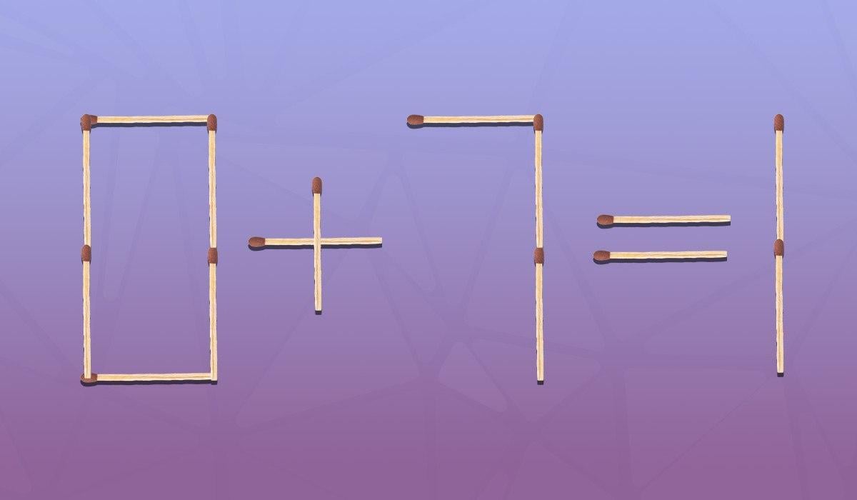 Έτσι, παρακάτω θα δείτε μια εικόνα όπου η ισότητα 0+7=1 είναι τοποθετημένη με τη χρήση σπίρτων. Προφανώς, εδώ υπάρχει ένα λάθος. Το καθήκον σας είναι να διορθώσετε την ισότητα κάνοντας μια μικρή αλλαγή.
