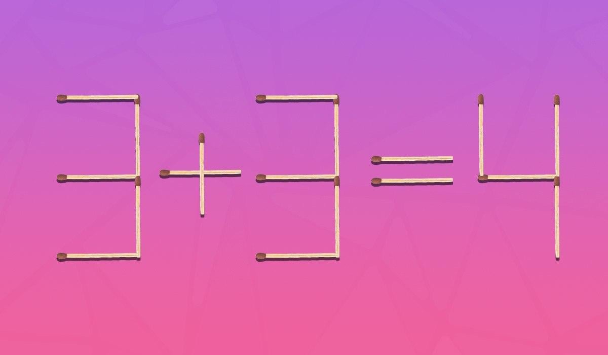 Έτσι, παρακάτω θα δείτε μια εικόνα όπου η ισότητα 3+3=4 είναι τοποθετημένη με σπίρτα. Από μαθηματική άποψη είναι λανθασμένη, διότι η απάντηση θα έπρεπε να είναι έξι.