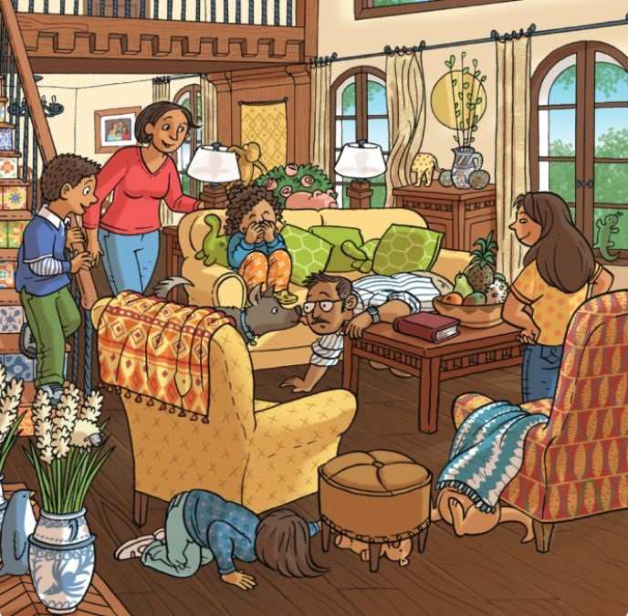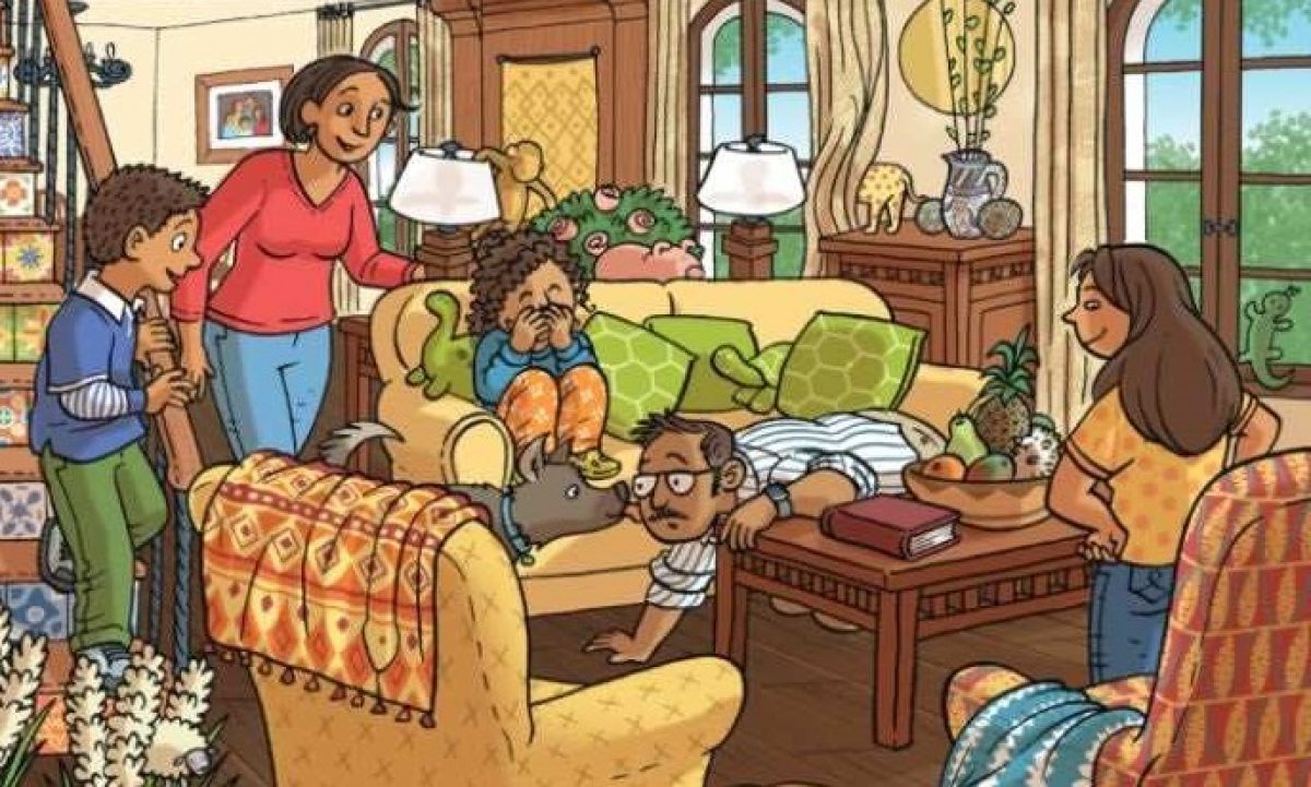 Στην εικόνα βλέπουμε μια οικογένεια που έχει χάσει κάτι και τώρα προσπαθεί να το βρει. Τα χαμένα αντικείμενα είναι ένα πινέλο και μια βούρτσα. Ο μπαμπάς, η μαμά και τα παιδιά τους προσπαθούν ανεπιτυχώς να βρουν τα χαμένα αντικείμενα, αλλά δεν τα έχουν καταφέρει ακόμα. Πρέπει να βοηθήσετε την οικογένεια στην αναζήτησή τους.