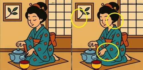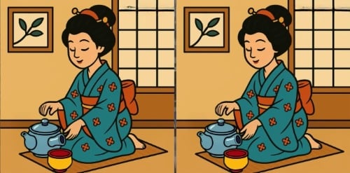 Είστε αντιμέτωποι με ένα κλασικό έργο: δύο εικόνες μιας Κινέζας με ένα φλιτζάνι τσάι φαίνονται πανομοιότυπες, αλλά στην πραγματικότητα υπάρχουν τρεις μικρές διαφορές μεταξύ τους. Αυτές μπορεί να αφορούν το χρώμα, το σχήμα ή τη διάταξη των λεπτομερειών.