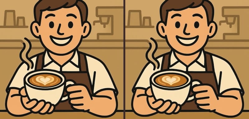 Είστε έτοιμοι να δοκιμάσετε την παρατηρητικότητά σας; Ρίξτε μια ματιά σε δύο εικόνες ενός barista. Στην αρχή φαίνονται πανομοιότυπες, αλλά υπάρχουν τρεις λεπτές διαφορές μεταξύ τους. Μπορείτε να τις εντοπίσετε σε 45 δευτερόλεπτα;