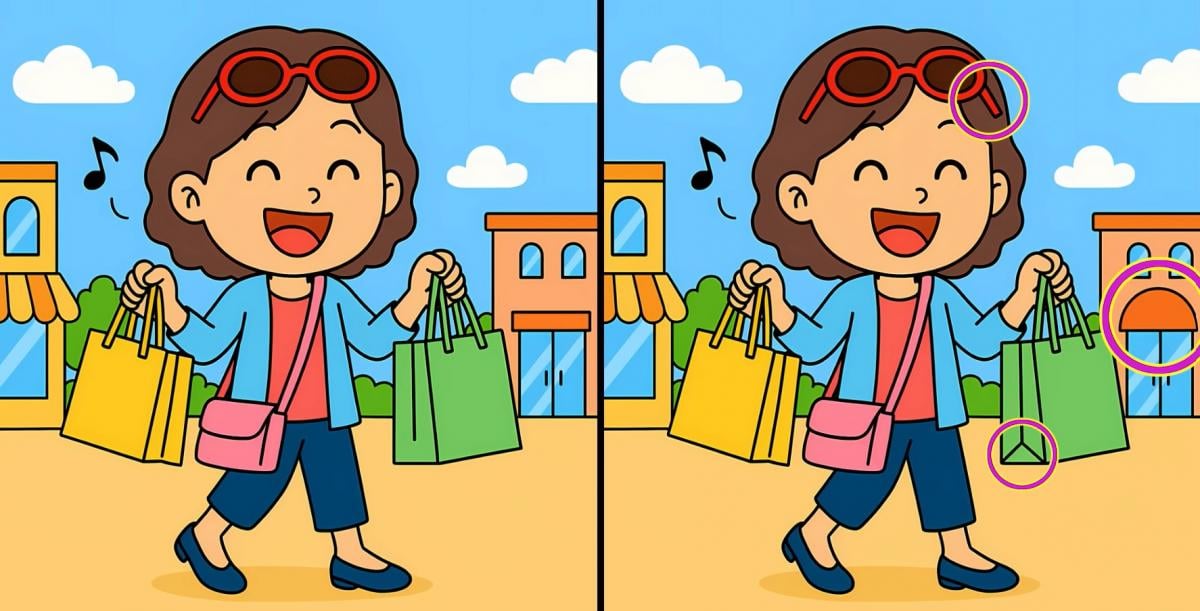 Είστε έτοιμοι να δοκιμάσετε την προσοχή σας; Ακολουθούν δύο εικόνες μιας κοπέλας που ψωνίζει. Μοιάζουν πανομοιότυπες, αλλά είναι απλά ένα τέχνασμα του ματιού – υπάρχουν τρεις διαφορές κρυμμένες ανάμεσά τους.