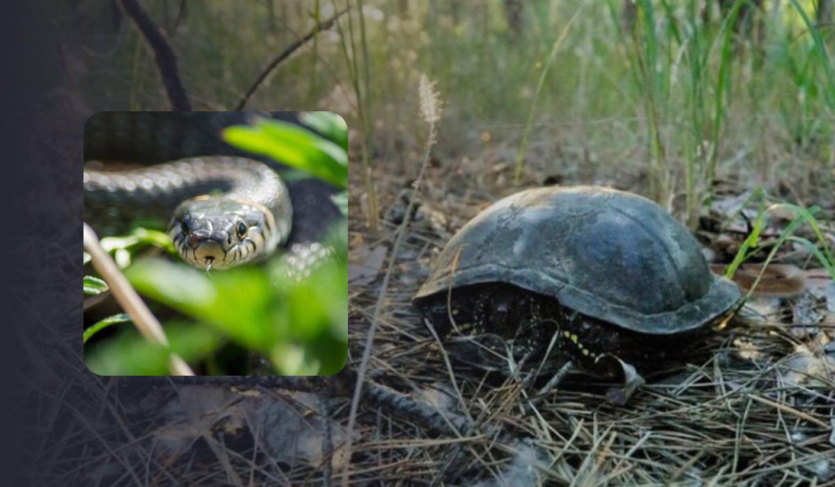 Σήμερα η Moje σας προσφέρει να δοκιμάσετε την προσοχή σας με τη βοήθεια μιας όμορφης φωτογραφίας. Στην εικόνα μπορείτε να δείτε μια μεγάλη χελώνα κρυμμένη στο καβούκι της. Περιβάλλεται από ξηρό και πράσινο γρασίδι, κλαδιά και δέντρα.