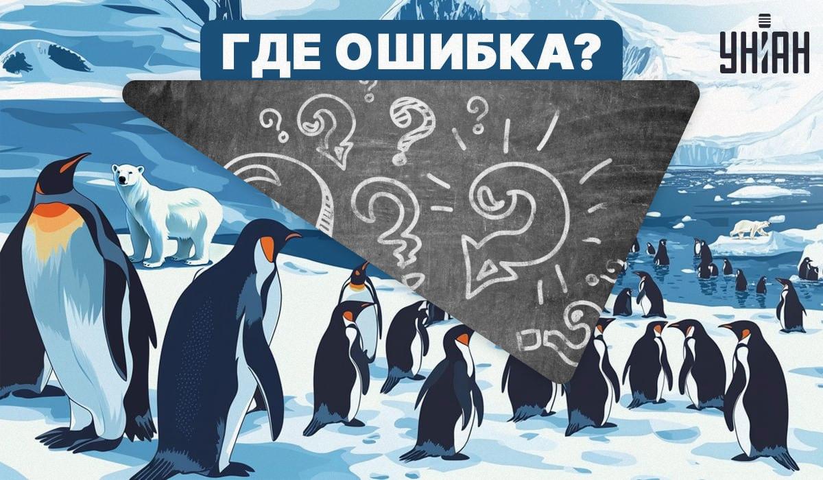 Η εικόνα δείχνει ένα σμήνος πιγκουίνων να περπατά στον πάγο. Με την πρώτη ματιά, η εικόνα φαίνεται φυσιολογική. Αλλά δεν είναι. Υπάρχει ένα εξόφθαλμο λάθος εδώ, αλλά μπορείτε να το εντοπίσετε; Για αυτό θα χρειαστείτε όχι μόνο προσοχή και λογική, αλλά και μια ευρεία οπτική γωνία.