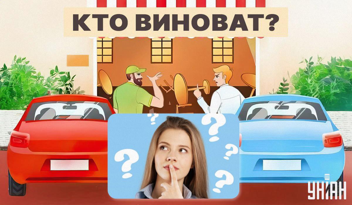 Παρακάτω θα δείτε μια εικόνα ενός κατεστραμμένου εστιατορίου και δύο αυτοκινήτων. Οι οδηγοί τσακώνονται για το ποιος προκάλεσε το χάος. Ο ένας κατηγορεί τον άλλον ότι είναι αυτός που προκάλεσε το ατύχημα.
